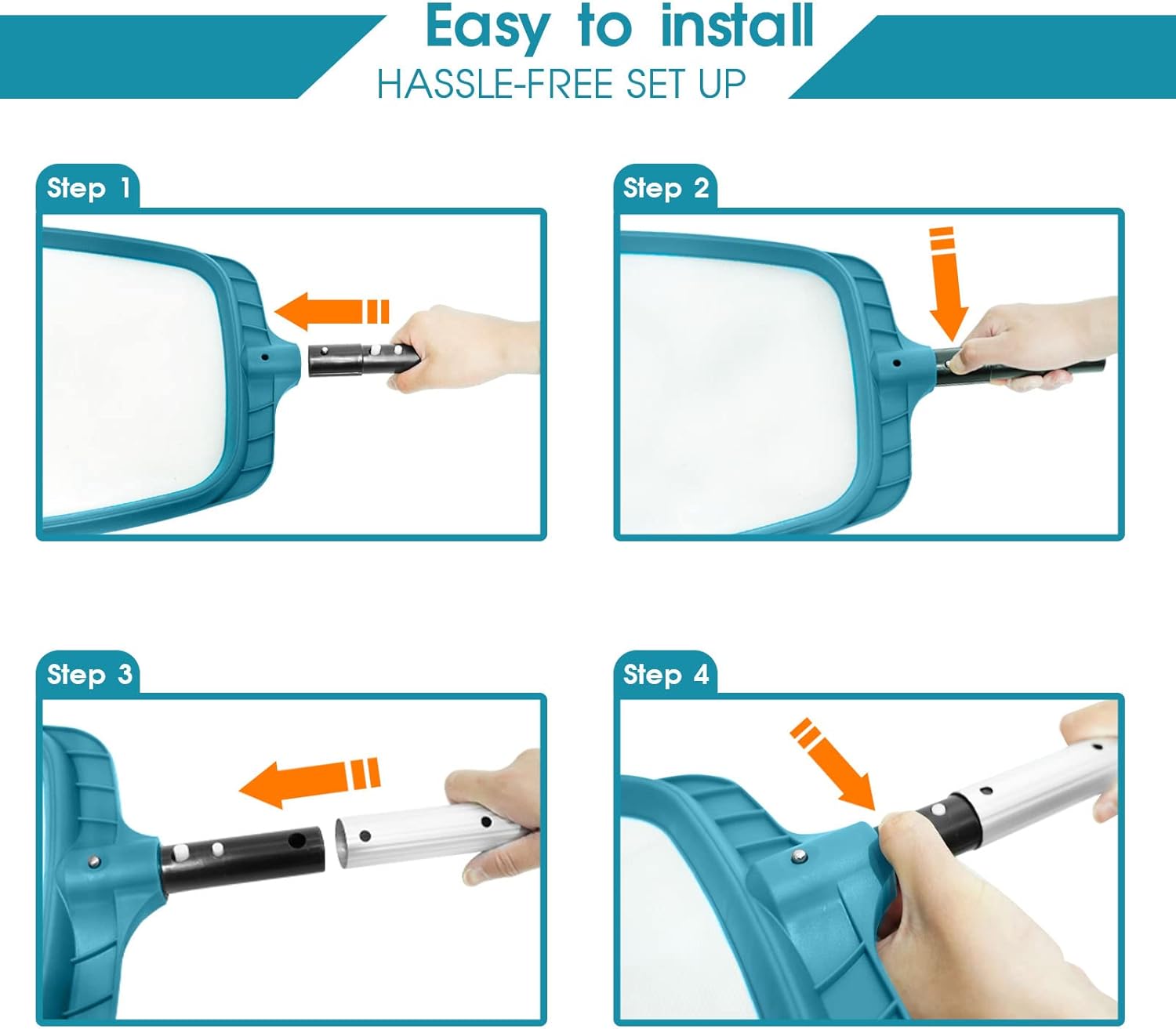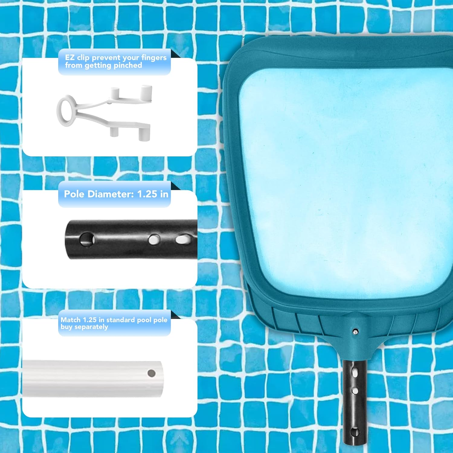 - Upgrade your pool cleaning with above pool skimmer.Universal holder fits (1-1/4") standard swimming pool pole to extend your reach and pick leaves from the bottom of pool (pole not included).