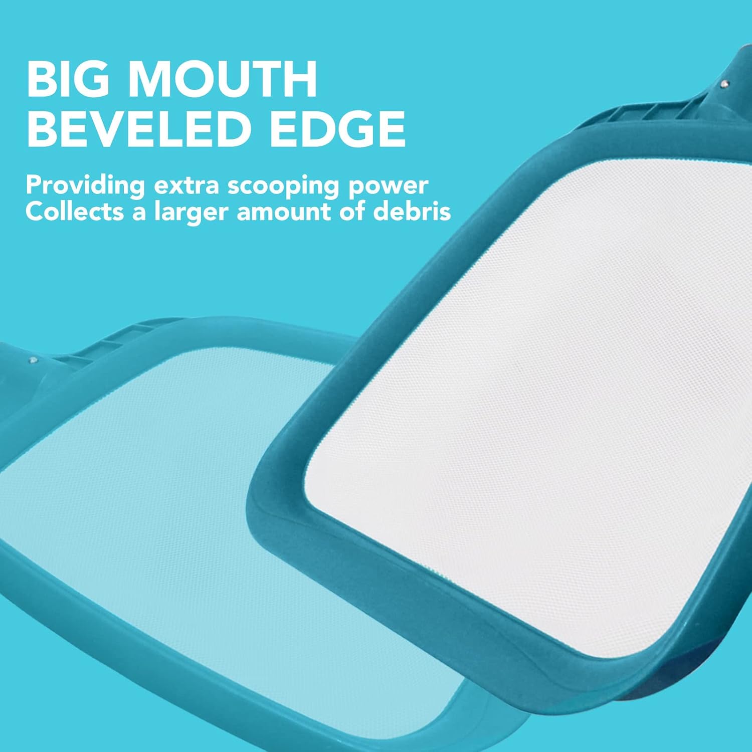 - Large Capacity: This swimming pool leaf skimmer(Size 19.5 x 13.5 Inches or 49 x 34 cm).The heavy duty lightweight plastic molded frame is safe for use in all types of pools and it won't mar pool liners
